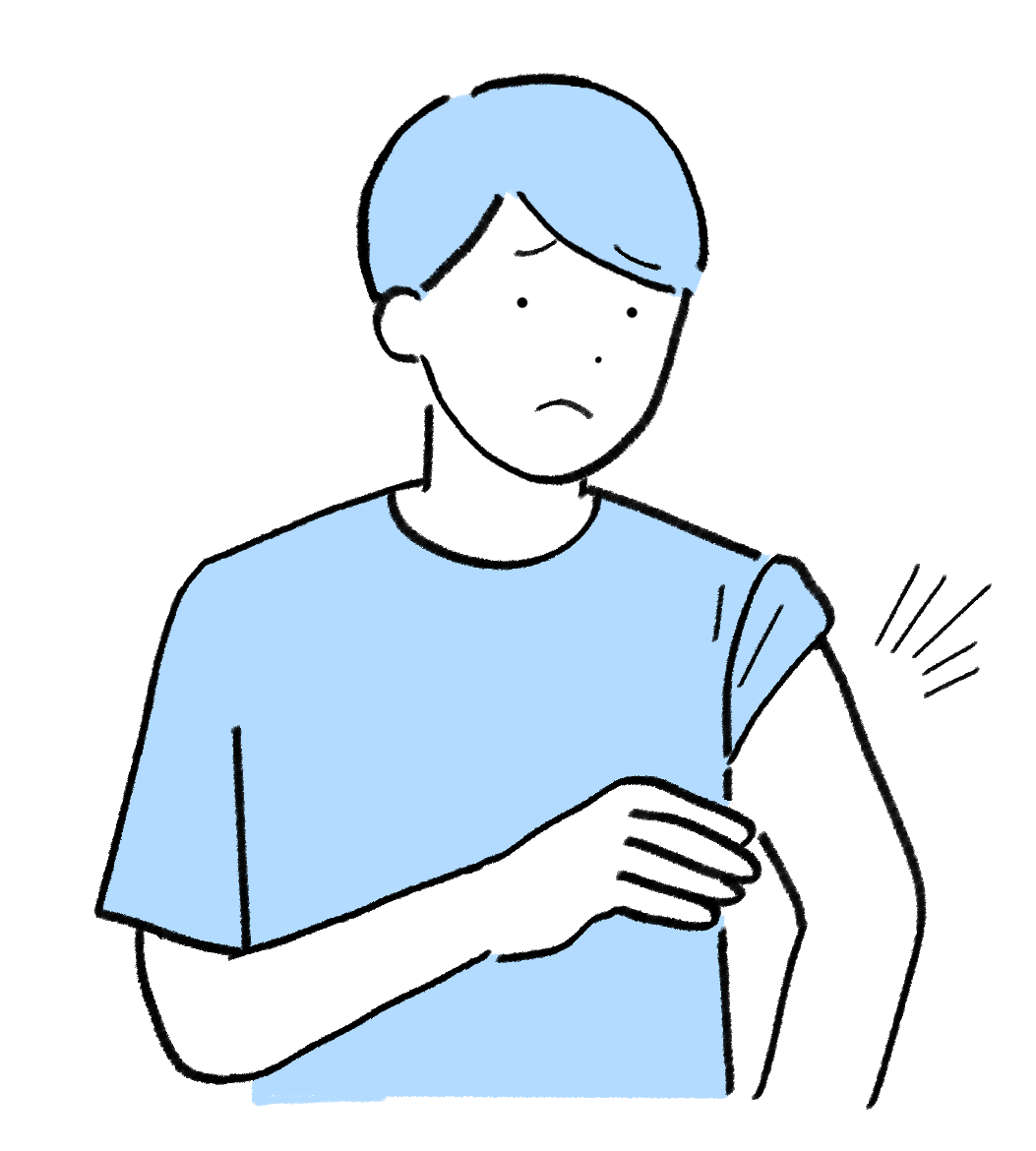 「『腕立て伏せ』をしたら、その後から左腕の後ろのつけ根のあたりが痛くなった。ドアを引っ張るときや物を持ち上げたりするときに痛みが出て困ってる」とのことでした。