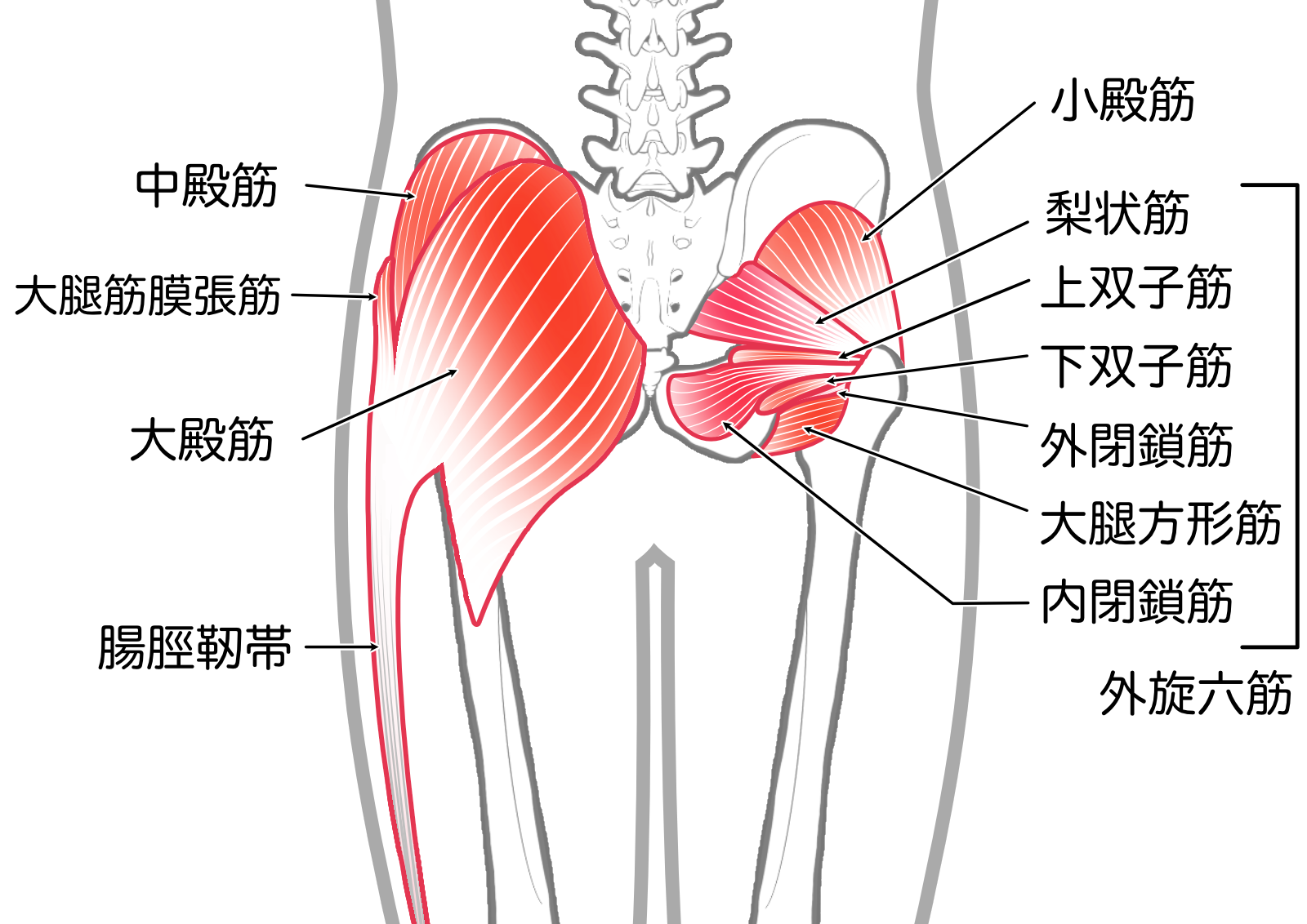 長時間そういう股関節を開いた姿勢で草取りをした場合、間違いなく「外旋筋」に負担が集中し傷めてしまうことが考えられます。