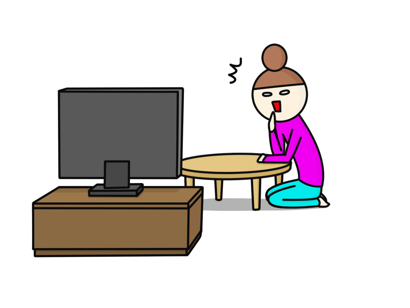 背骨の曲がりに関しては病的な「側弯症」ではないと思われましたので、生活の中で曲がる可能性のある姿勢があるかどうか聞いてみると、テレビを観るときに左に身体を捻って観てるとのことでした。