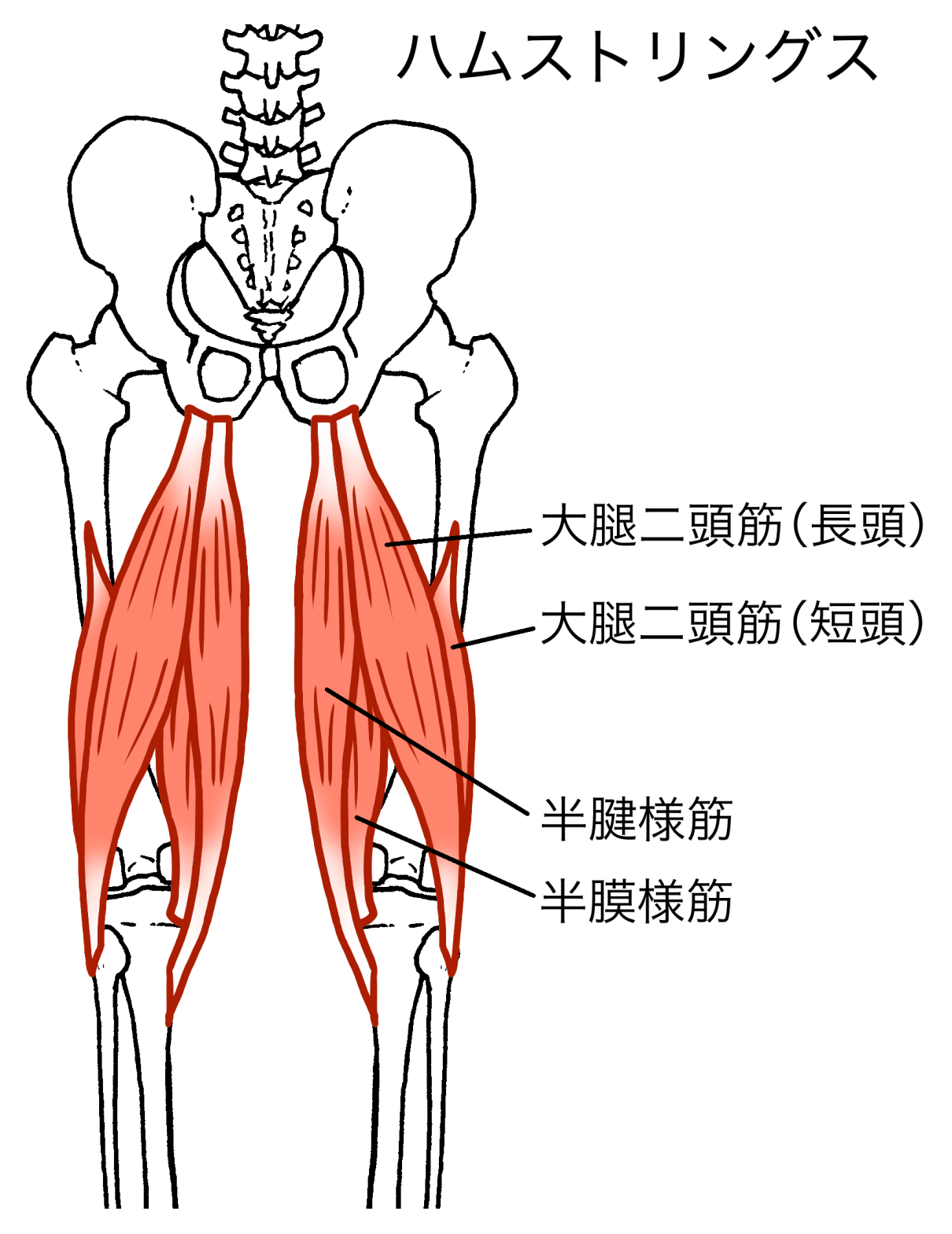 今回のケースは「大腿二頭筋(長頭)」が傷んでいたため、「坐骨」に付着している筋肉部分が座ることで圧迫され痛みを発したものと考えられます。