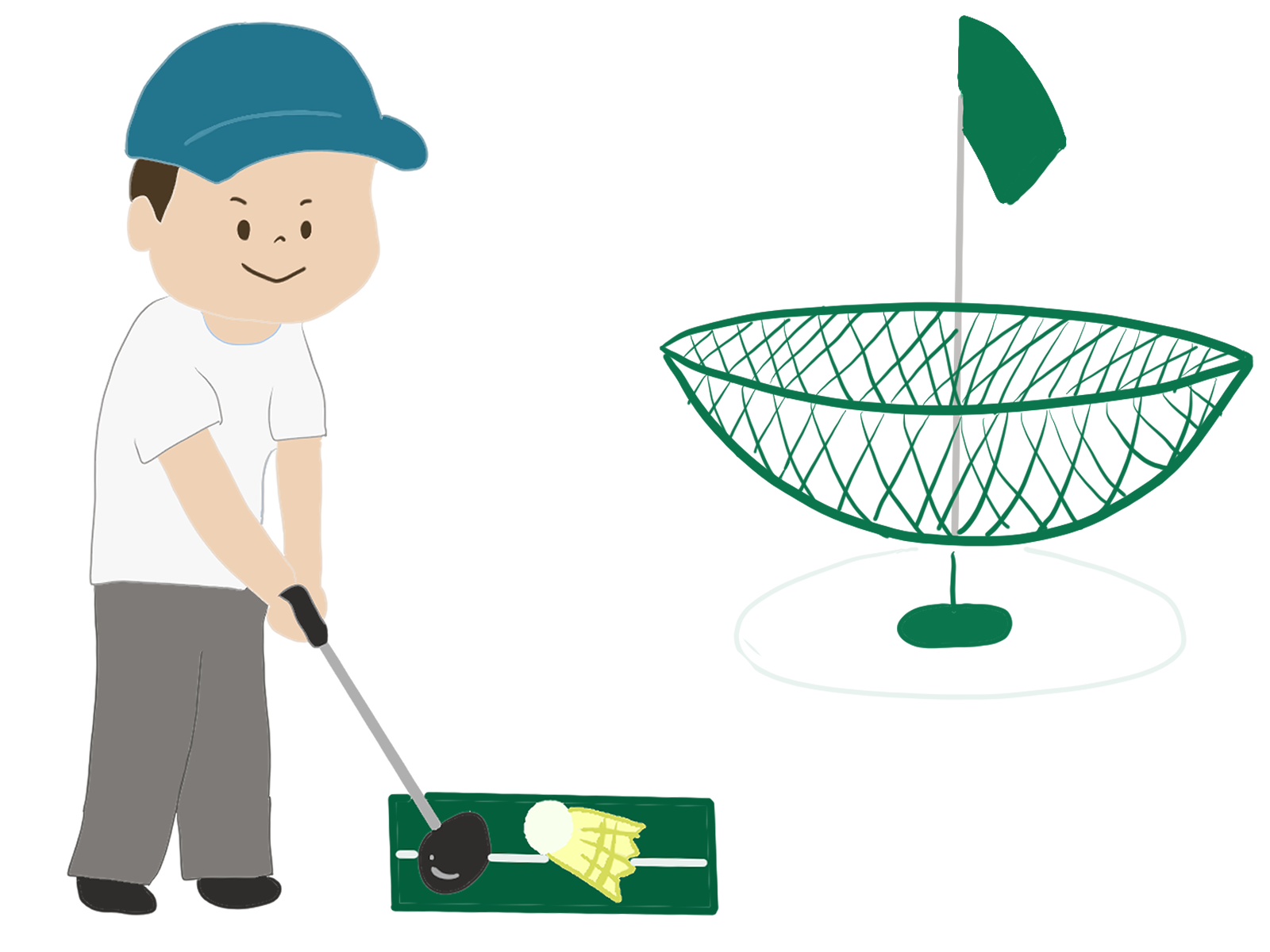 (※「ターゲット・バードゴルフ」とは、羽根の付いたプラスティック製の小さなボールを1本のゴルフクラブ (ウェッジ)で飛ばす日本で生まれたゲーム)