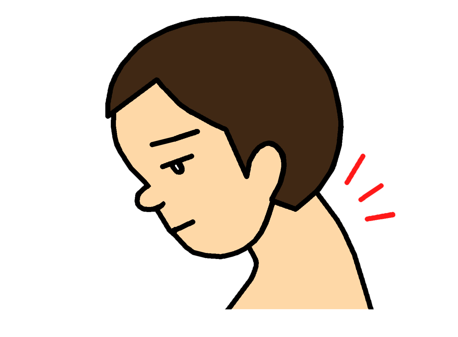 首をチェックしたところ、確かにご本人の訴えどおり右の斜め後ろの筋肉が硬くなっていました。